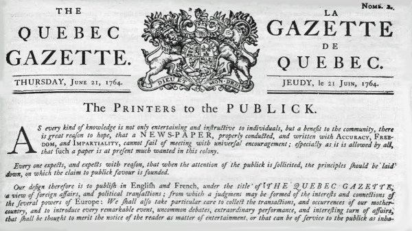 “But along came the likes of Fleury Mesplet, Pierre du Calvet, John Neilson, James Brown, William Brown, Jocelyn Weller, Daniel Tracey, Henry-Antoine Mézière, Samuel Neilson, Ludger Duvernay, François-Xavier Garneau and many others who were the prime movers, the instigators who educated the people and also they were the ones who through their printed pages influenced the people and politicians of Lower Canada and Québec during the formative years of Confederation.”