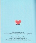 Uncle Paul worked as a stockbroker with the Montreal brokerage firm MacDougall, MacDougall, MacTier.  Every weekday afternoon, he left work early and volunteered two hours of his time at The Montreal Children’s Hospital, playing with the kids in the orthopaedic ward. He was much appreciated and recognized as one of their principal volunteers during that time. Years later, I wrote and dedicated a children’s book to him called Bonnie – The Car with a Heart.[3] All proceeds from the sale of the book were donated to the Montreal Children’s Hospital in his memory. But not even “Bonnie” had a heart as big as Uncle Paul!