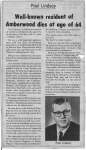 After his retirement in 1983, he moved from Montreal to Amberwood, a small community in Stittsville  just west of Ottawa. He quickly became a well-known member of his new community. One of his proudest moments was being approved as a “block parent” with their official sign posted in his window. In the year 2000, shortly after his death, the local park he helped develop for the neighborhood children was named after him.Paul Lindsay memorialPaul Lindsay Park DedicationIMG_0839Uncle Paul’s Nieces, Nephews and Family – May 2018