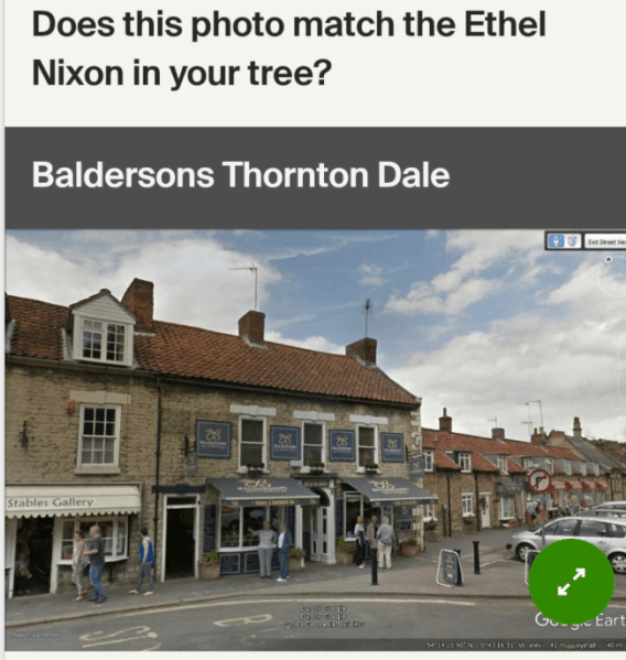 But, the oddest of coincidences: Two weeks after I had returned home to Canada, my Ancestry app sent me a ‘photo hint’ for someone in my tree and I recognized the restaurant my son and I had just visited in Thornton-le-dale, Baldersons Cafe! (Had it shown up before our trip, it would have meant nothing to me.)