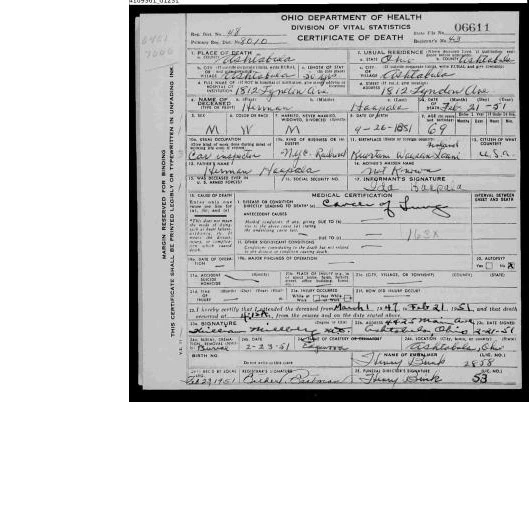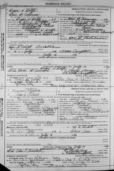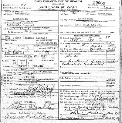 Two years after Johan’s passing in 1946, Ida married Heman Haapala from Ashtabula. He had been employed as a car repair man for the railroad company. They were both in their sixties and in good health. This allowed them to travel to Florida during the winter months. Alas! this union lasted a few short years. Herman died of lung cancer in February 1951.