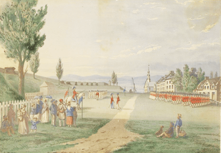 View of the Esplanade and Fortification of Quebec 1832 shows the British garrison on Parade Robert A. Sproule, BanQ