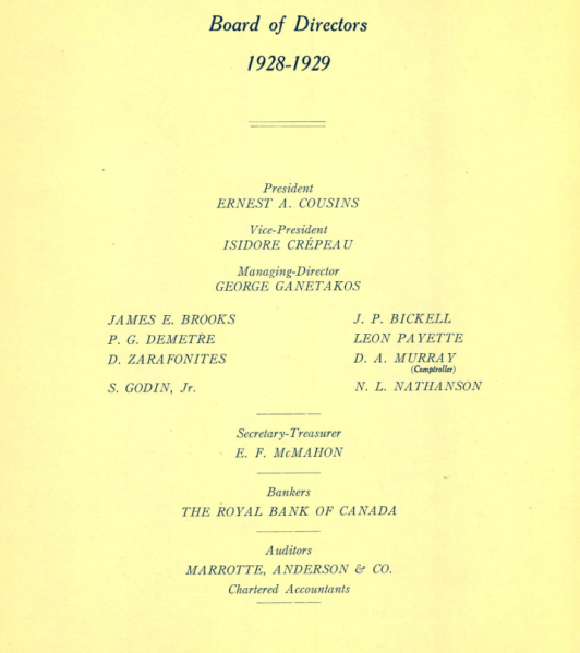 The President was Harry Pulos aka Harambolous Koutsogiannapoulos, the defacto leader of the early Greek Community in Montreal.2 How interesting.