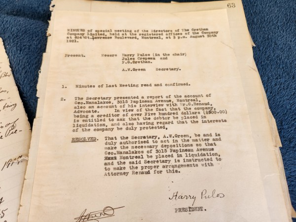 Taking an even closer look at the Minute/Scrap Book I suddenly noticed the significance of the dates. The Crethan Company was started in 1916 and ran until (at least) 1922 when the minutes end.
