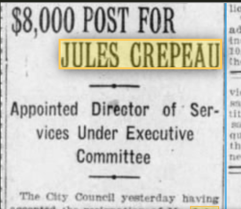 Jules had complete recall so this was a useful learning experience. In 1921, he landed that plum post of Director of City Services, a new position set up specifically to ensure an even distribution of municipal assets across the wards. Before the post was created, community groups from across the spectrum were invited to give their input on the subject.