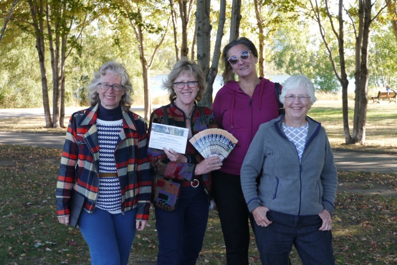 Tracey Arial, Lucy Anglin, Dorothy Nixon and Janice Hamilton are four of the nine contributors to the forthcoming book Beads in a Necklace: Family Stories from Genealogy Ensemble. On Sunday, they read some of their family history stories at the Verdun Farmer’s Market as part of a series of culture day events sponsored by the City of Montreal.