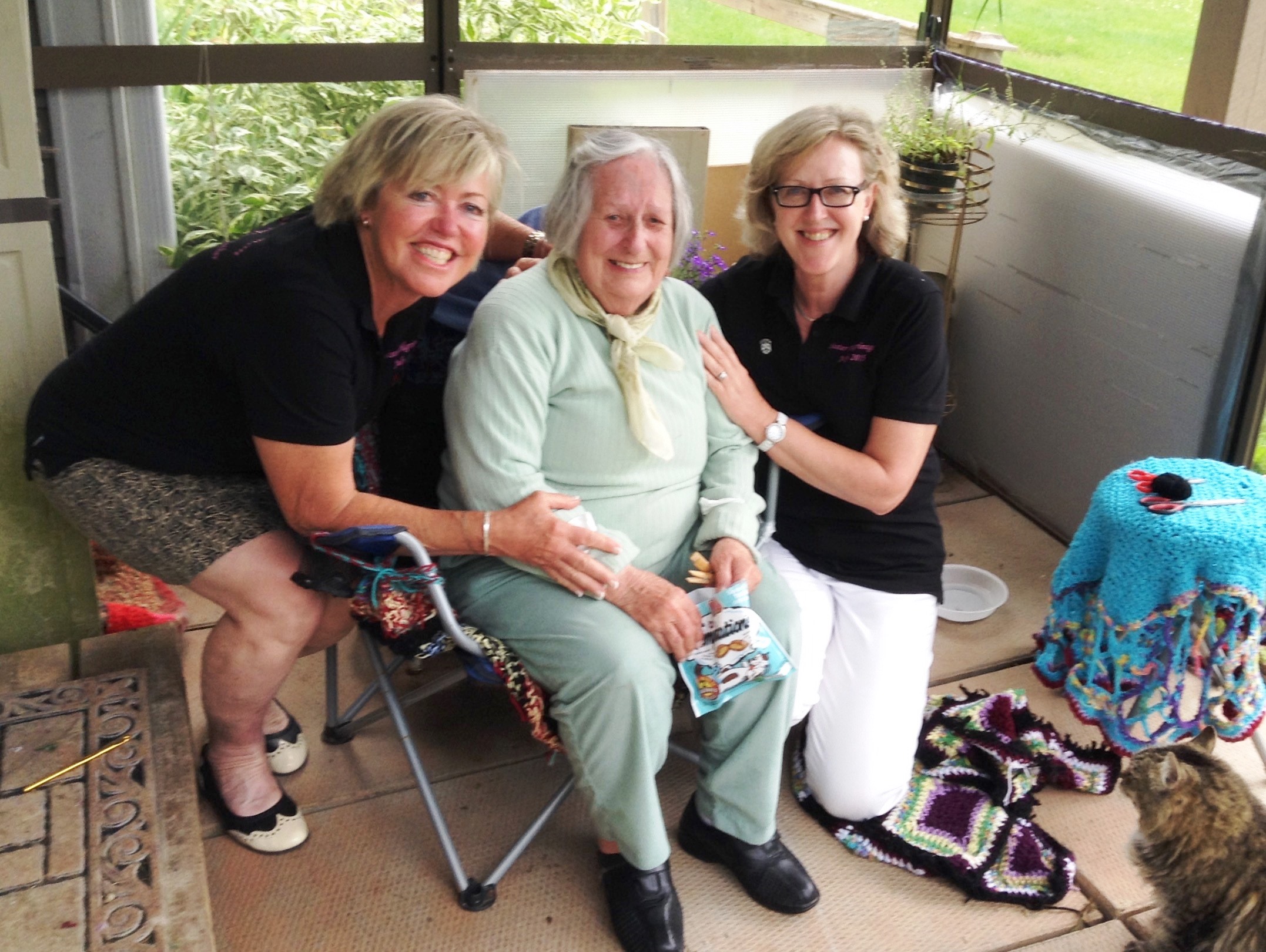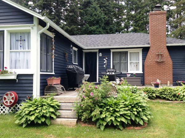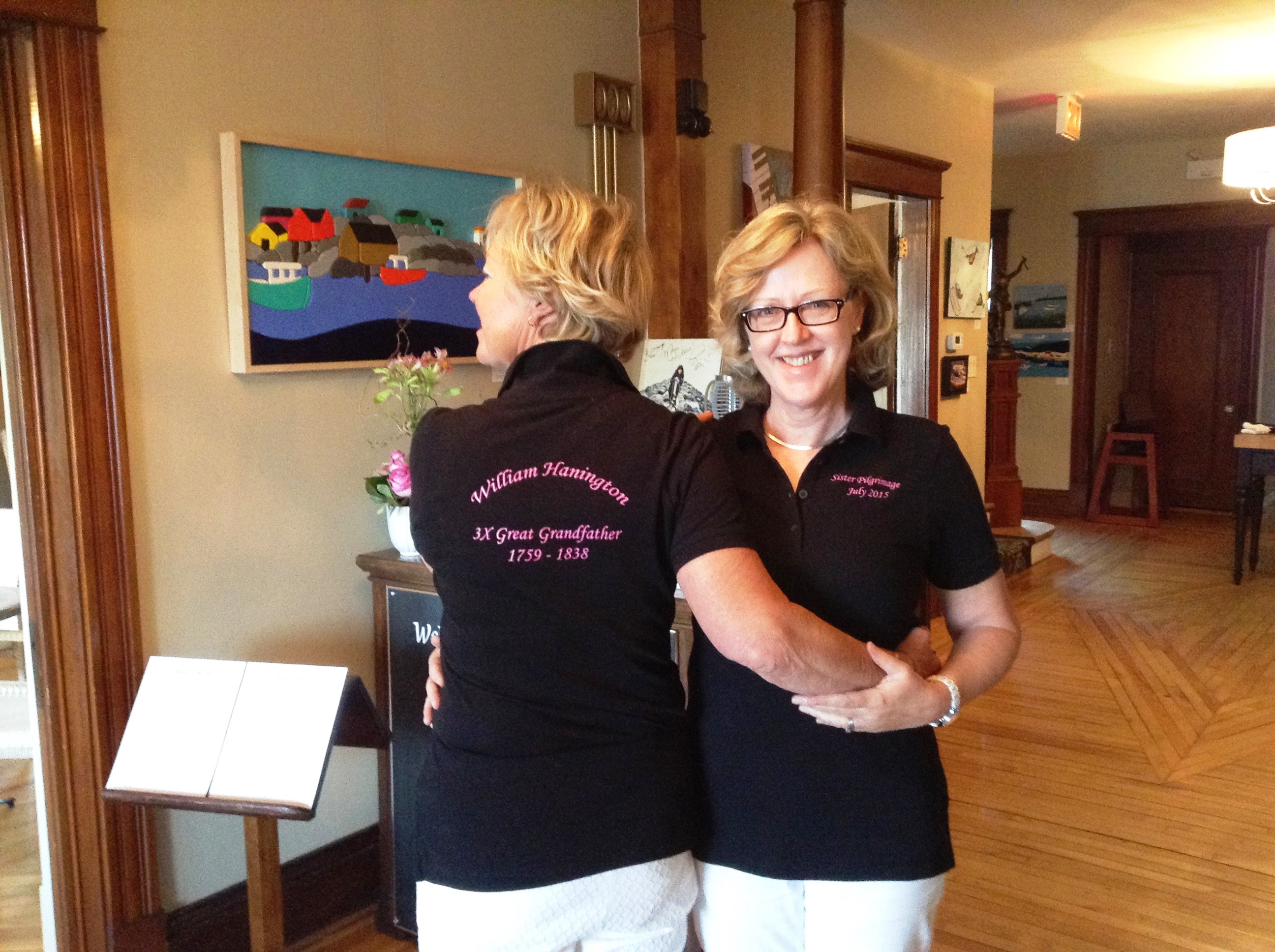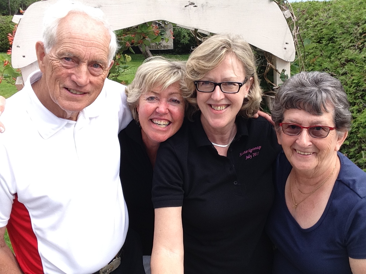 In July 2015, my sister and I took a “sister pilgrimage” trip to the New Brunswick area, and finding Iona Cottage was the top priority. We recognized it immediately even although the light yellow cottage from our memories had been painted a lovely country blue. The surrounding grounds looked immaculate and a quick peek in the window assured us that it was well loved inside and out. What a terrible disappointment when no one answered our knock at the door. We snapped a few photos of house and garden (and us!) for our travel album and to share with the rest of the family.