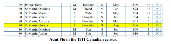 Marie-Catherine Cecile Crepeau was born in Montreal 1909 to Jules Crepeau and Maria Roy, my grandparents. She had an older brother and sister, Louis and Alice and in 1914 or so another girl her age, Florida, was plucked off the scruffy streets of south central Montreal and brought into the family fold. My mother would appear much later in 1921.