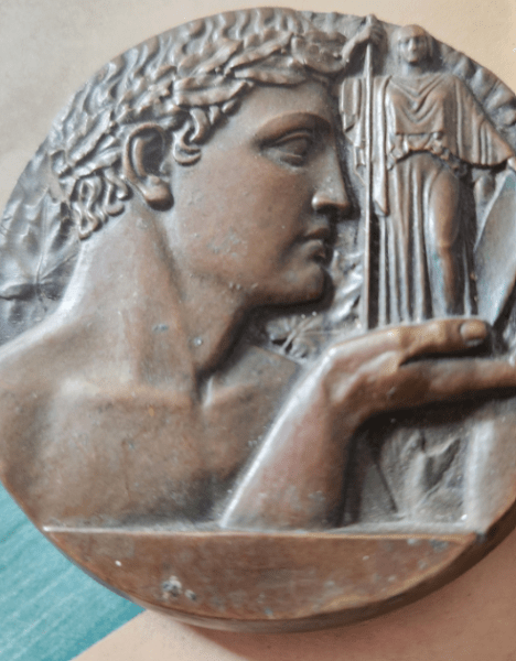 I have the medal somewhere and I found this tidbit from a tabloid called “L’illustre” describing the 1937 Beaux-Art exhibition: “Although the Hall of Paintings has little that is very striking, Therese Boucher’s “Reclining Man’ is vigorously treated. Among the angels, Cecile Crepeau’s is most alluring, in large part because of the curious golden tonality of the ensemble. Her study of a face, placed to the right of the entrance, has life and sincerity, despite some weaknesses. Her blue vase beside a pewter bowl also merits a mention. The female nudes are unimpressive.”
