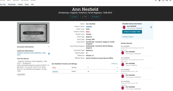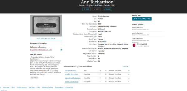 As is typical, I know little about the life of my great great grandmother, Ann Nesfield, a cook from North Yorkshire, UK except the basics: birth (1838), death (1912) marriage (1861) and children (10) but thanks to the Internet I know a great deal about her employer, Nathaniel Thomas Lumley Hodgson, a member of the landed gentry. So, just for fun, I have strung together this little fiction about my great great grandmother from some intriguing facts about Mr. Lumley Hodgson found online.