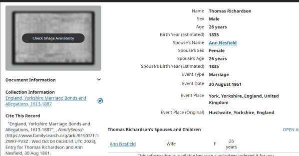Yes, a notice in the paper in August 1861 said Mr. Lumley Hodgson was leaving Highthorne for ‘the health of his daughters.” (The girls were likely not frail, since Julia lived to a ripe old age and Emma was playing competitive doubles tennis in her thirties, I think.) And, yes, a week later, my great great grandmother, Ann Nesfield got married at Husthwaite.