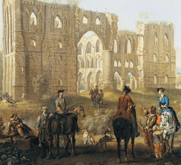 But Jack is a lowly farmhand and Mr. Richardson is a country tailor with a ready clientele and a sweet sunny cottage of his own, Abbot’s Well, with a fine prospect of the Rievaulx Monastery ruins. As I trot along on foot to Helmsley, my poke brimmin’ with dragonwort balm, tansy oil and other home-made potions to sell at market, I can watch from a distance as the Earl of Feversham’s family and friends go a-huntin’ o’er the heathery moors outfitted in all their finery on their own spirited Cleveland Bay/Thoroughbred crosses.