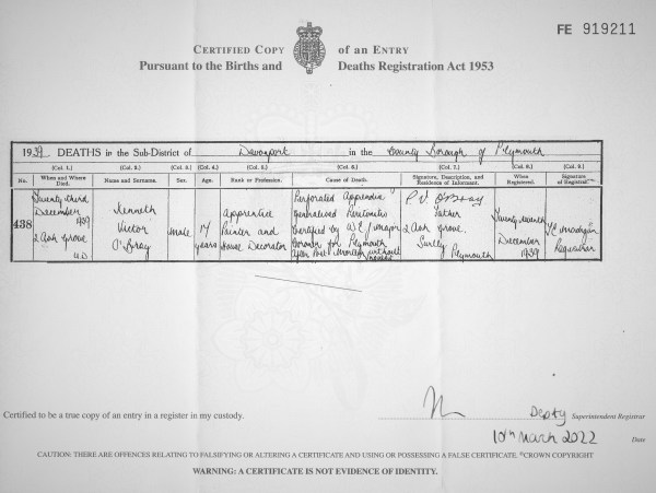 My mother-in-law told her son John, that when Uncle Ben returned to his home in Liverpool he was a wreck. Emaciated, haunted, ill and looking twice his age. He was 36 years old. Uncle Ben did not live long to enjoy life and died in 1948 at the age of 38. Because of his young age, a Post Mortem was performed and he was found to have died of bacterial endocarditis. RIP Uncle Ben.
