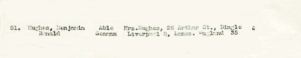 “Able Seaman. Benjamin Ronald HUGHES, C/J. 114923.